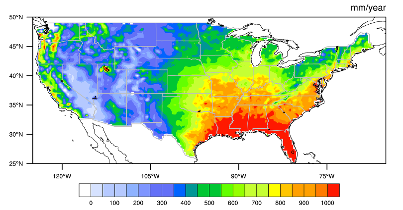 图2 AWB估算的美国大陆ET 1979-2021年空间分布